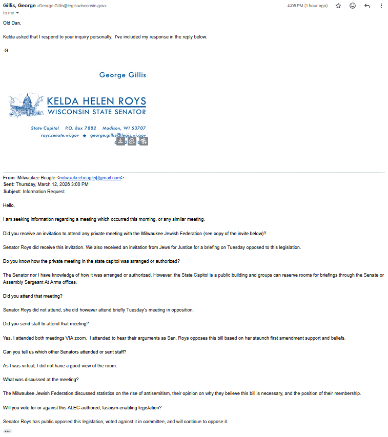 Did Milwaukee Jewish Federation ask State Senators to Violate Open Meetings Law?