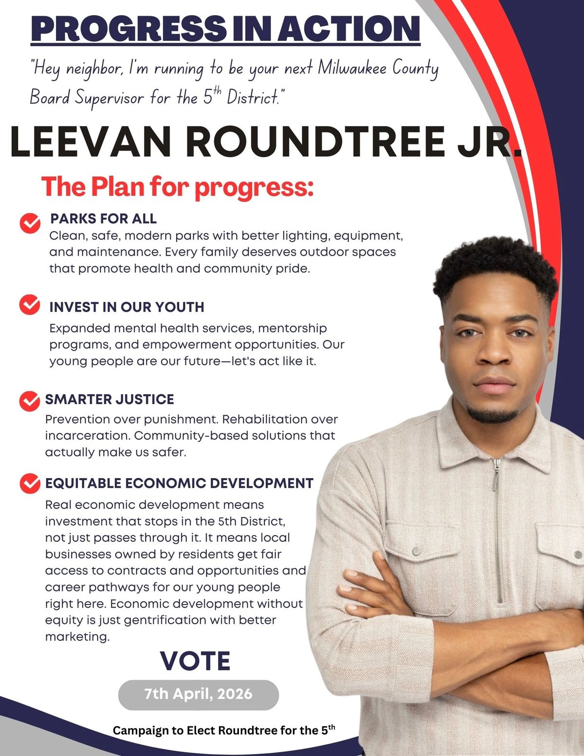 Other green flags for Roundtree include policy positions like “Prevention over punishment. Rehabilitation over incarceration.” and his ambition and innovation in general. He’s a “fashion psychologist” which seems cool! I hope it means he’ll bring creativity and energetic engagement to a County Board known for laxity and rubber stamping. A red flag: He works at the Howard Fuller Collegiate Academy. Fuller is one of the architects of school privatization which is starving Milwaukee Public Schools of needed resources, creating very shitty situations.